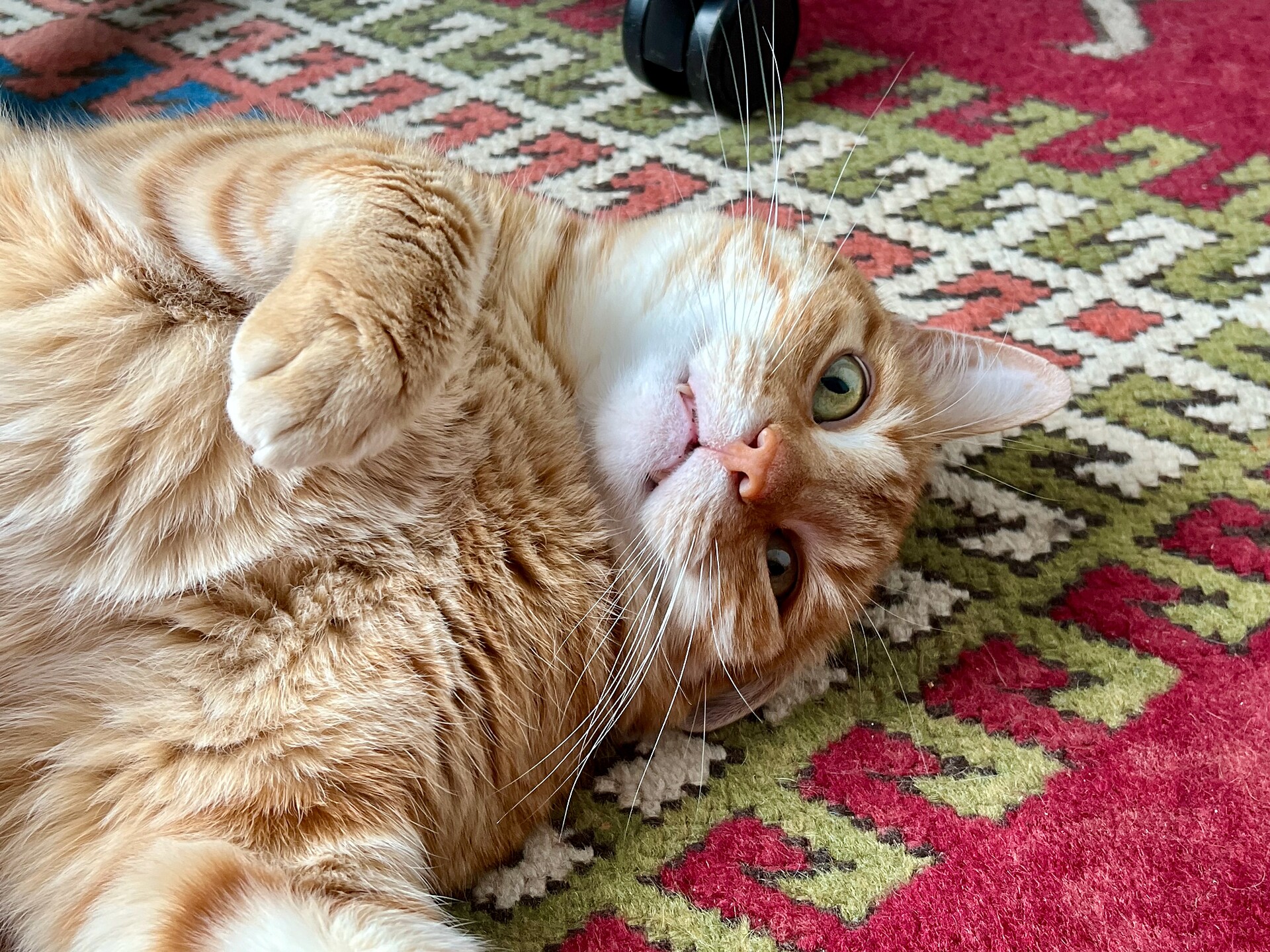 Je m’applique beaucoup à être un chat très mignon. Surtout quand je veux qu’on me donne à manger, mais pas que. Là par exemple je mime le chat mort de faim.